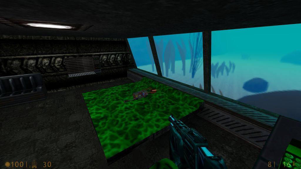 Unearth’s design feels like an underwater research station, and it’s visually stunning. Exploring this map feels like stepping into a completely different game. The textures are outstanding, with a flowing green energy liquid that seems to guide players through the map. Its atmosphere is highly original and stands out among other Half-Life maps. However, while the design is brilliant, the frequent need to open and close doors slows down the gameplay. Perhaps this isn’t meant to be a fast-paced Half-Life map, but the constant interruptions can feel cumbersome at times.