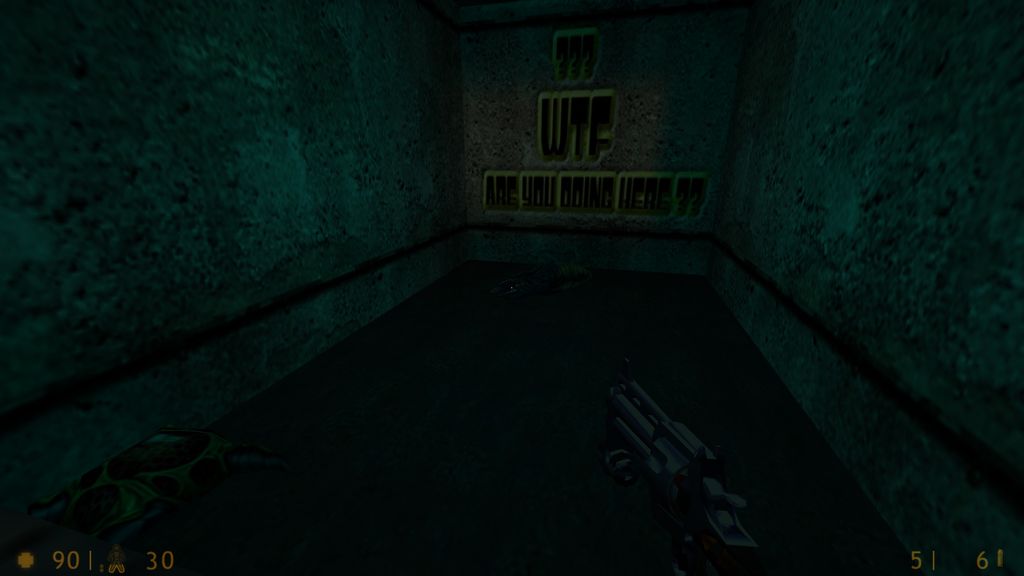 • Notable features: Explosive crates, graffiti, odd teleport, hidden snark room